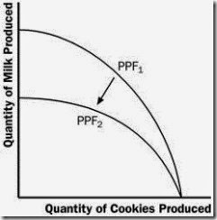 8. A production possibilities frontier is bowed outward when